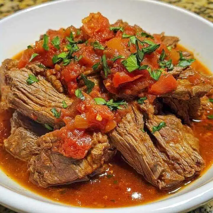 7 Mit frischer Petersilie bestreuen und servieren – ein Schmorbraten wie in Italien! 🇮🇹✨
