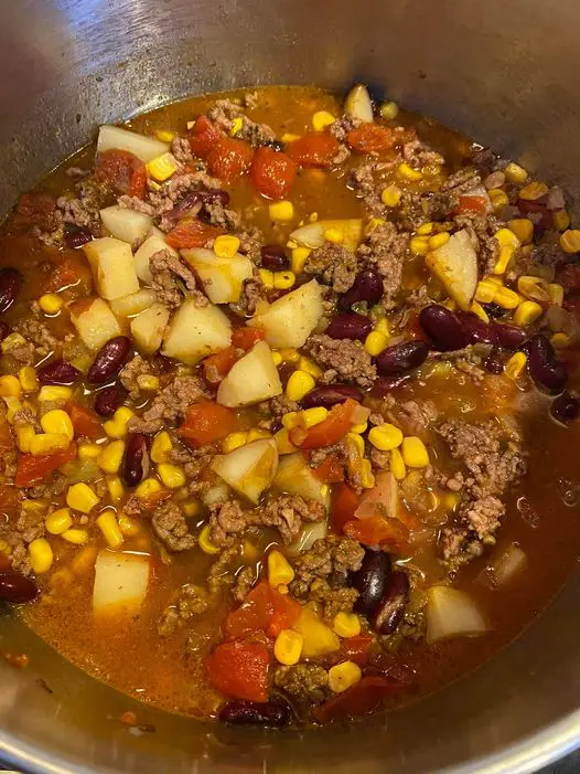 5 Kidneybohnen und Mais unterrühren und weitere 5 Minuten garen.