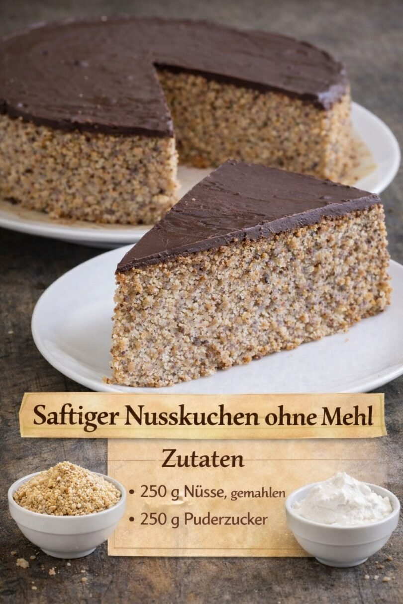 Ein saftiger, aromatischer Kuchen, der komplett ohne Mehl auskommt – perfekt für Nussliebhaber und Schokoladenfans.