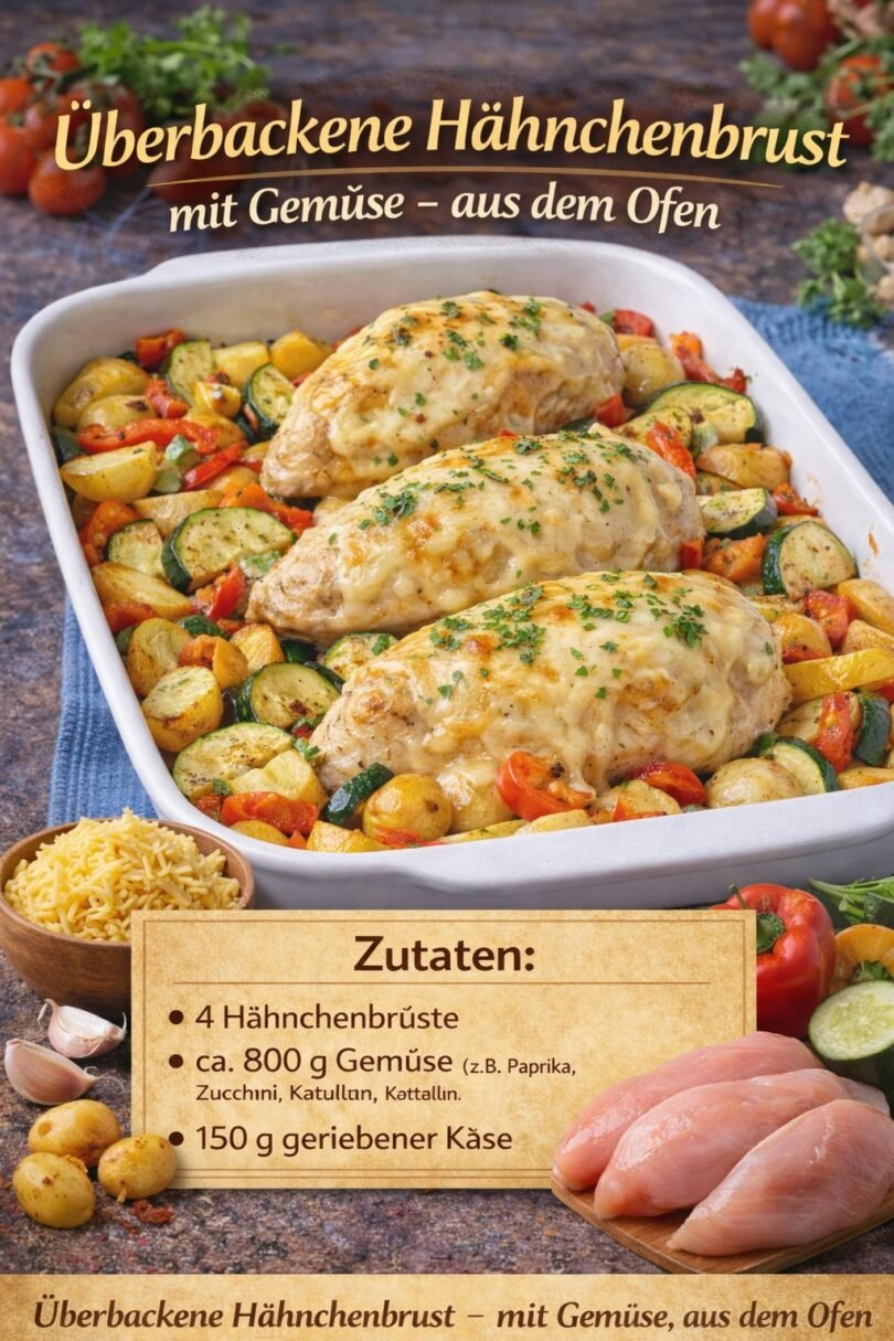 Überbackene Hähnchenbrust mit Gemüse – aus dem Ofen
