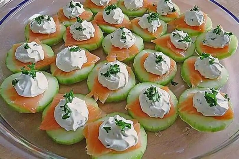 Die Gurke gründlich waschen und in etwa 1 cm dicke Scheiben schneiden. Die Gurkenscheiben bieten die perfekte Basis für die Häppchen und verleihen ihnen eine erfrischende Note.